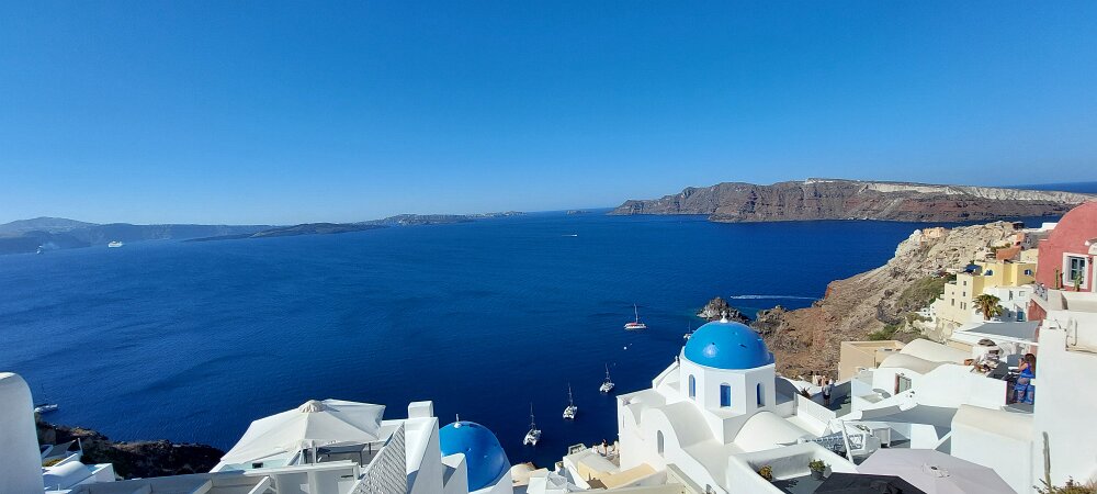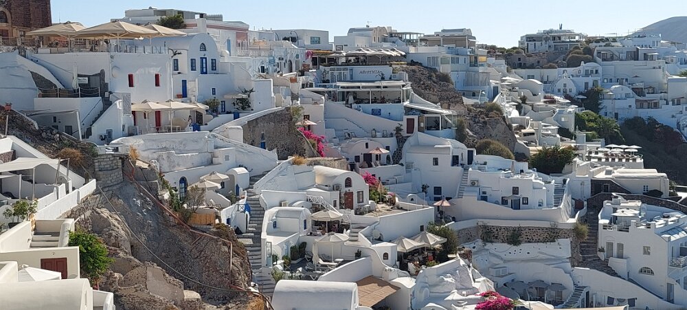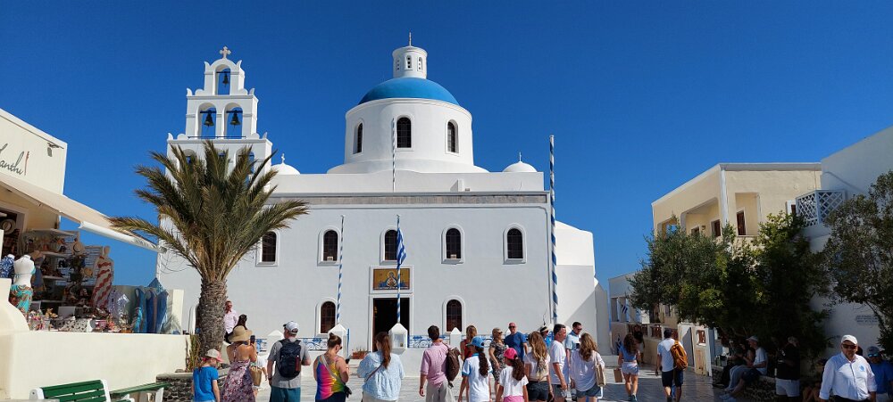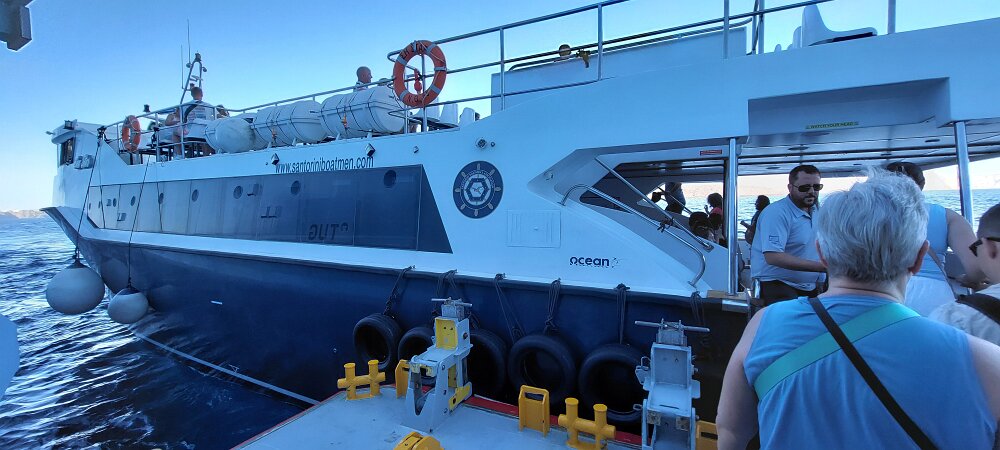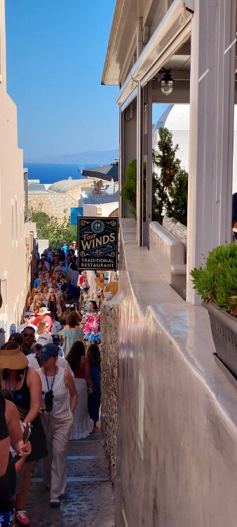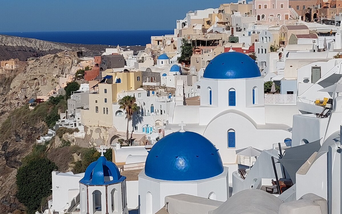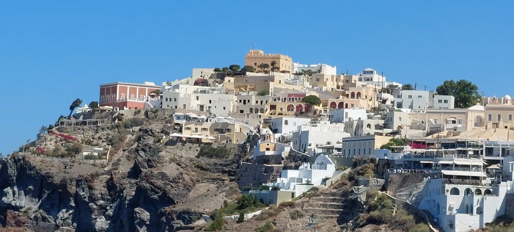 Our tender Blue domed church Blue domed church Blue domed church Blue domed church Blue domed church Town of Oia Town of Oia Town of Oia Breakfast in Oia View of blue domed churches from the patio where we had breakfast View from the patio where we had breakfast Another blue domed church Blue domed church View from the town of Fira (our ship is on the left) Our ship Our cabin is on Level 9 - one level down from the bridge where it extends out the side of the ship, and above the 4th life boat from the front. Town of Fira Town of Fira View from the town of Fira SicilyEphesus