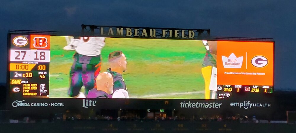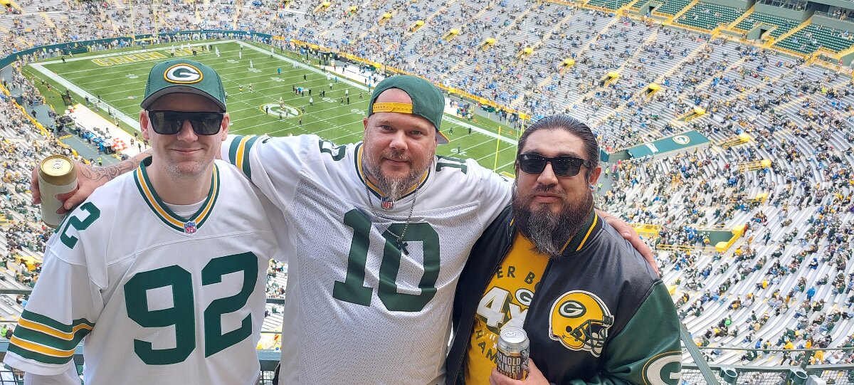 Packers versus Detroit Lions Packers versus Detroit Lions Dave, Justin, Miguelle Video - offense players enter Video - defense players enter - Micah Parson's first intro in Green Bay Packers about to score their first touchdown Packers win 27-13 Picture of us in our seats taken by the Green Bay Packer field camera Video - Packers win 27-13 Packers versus Cincinnati Bengals Tailgating at Jamie's before the game Justin, Mary, Amanda Packers win 27-18 Video - Packers win 27-18 Picture of us in our seats taken by the Green Bay Packer field camera Packers versus Carolina Panthers Joshua and Natalie Picture of us in our seats taken by the Green Bay Packer field cameraPackers lost 13-16 Packers versus Minnesota Vikings43 degrees at game time Packers versus Minnesota VikingsThe sun comes out Firkus CabinItaly and Greece